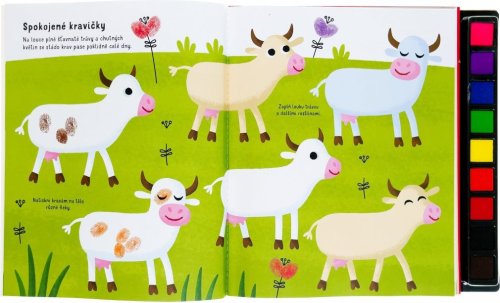 Na každej stránke s tematikou farmy a hospodárskymi zvieratami sa môžeš umelecky vyjadriť a obrázky zaplniť aj podľa svojej vlastnej fantázie. Hotové odtlačky môžeš dokončiť pomocou fixky a pridať im drobné, nápadité detaily - vytváraj kuriatka, šaláty, králiky či balíky sena. Rôzne prsty robia rôzne odtlačky, tak na nič nečakaj a pusť sa do tvorenia.