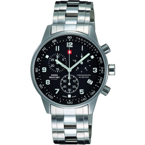 Pánske náramkové hodinky Napájanie z batérie Priemer puzdra 41,0 mm Puzdro v tvare kruhu Oceľové puzdro Strieborná farba puzdra Oceľový ťah Strieborná farba ťahu Ručičkový ciferník Čierna farba ciferníka Ciferník s arabskými číslami Materiál skla - minerálne sklo Odolné