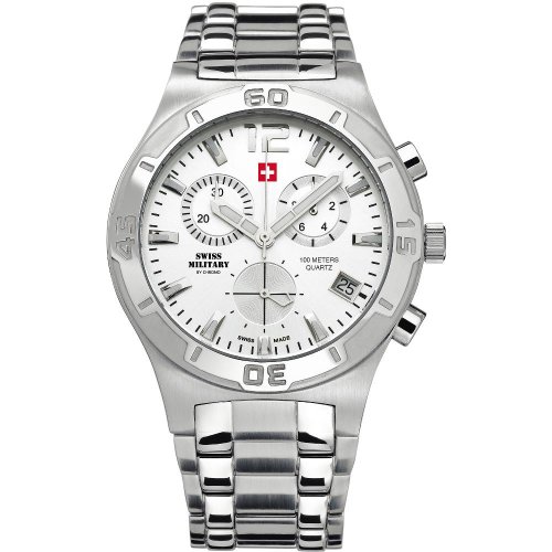 Pánske náramkové hodinky Napájanie z batérie Priemer puzdra 43,0 mm Puzdro v tvare kruhu Oceľové puzdro Strieborná farba puzdra Oceľový ťah Strieborná farba ťahu Ručičkový ciferník Biela farba ciferníka Ciferník s dvanástimi indexmi Materiál skla - minerálne sklo
