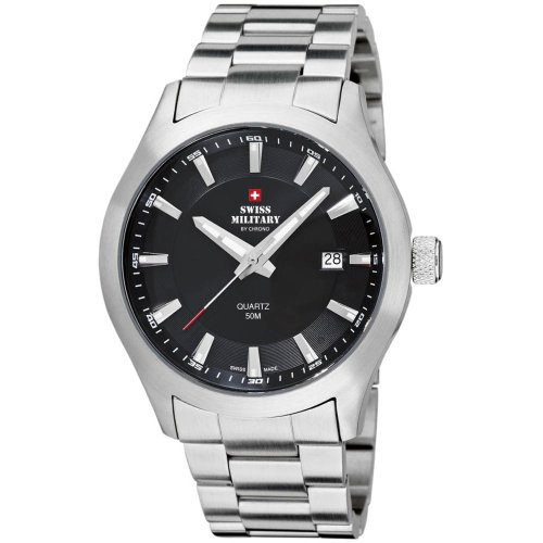 Pánske náramkové hodinky Napájanie z batérie Priemer puzdra 42,0 mm Puzdro v tvare kruhu Oceľové puzdro Strieborná farba puzdra Oceľový ťah Strieborná farba ťahu Ručičkový ciferník Čierna farba ciferníka Ciferník s dvanástimi indexmi Materiál skla - minerálne sklo Odol