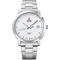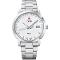 Pánske náramkové hodinky Napájanie z batérie Priemer puzdra 40,0 mm Puzdro v tvare kruhu Oceľové puzdro Strieborná farba puzdra Kovový ťah Strieborná farba ťahu Ručičkový ciferník Biela farba ciferníka Ciferník s dvanástimi indexmi Materiál skla - minerálne sklo