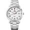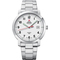 Pánske náramkové hodinky Napájanie z batérie Priemer puzdra 40,0 mm Puzdro v tvare kruhu Oceľové puzdro Strieborná farba puzdra Kovový ťah Strieborná farba ťahu Ručičkový ciferník Biela farba ciferníka Ciferník s dvanástimi indexmi Materiál skla - minerálne sklo