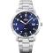 Pánske náramkové hodinky Napájanie z batérie Priemer puzdra 40,0 mm Puzdro v tvare kruhu Oceľové puzdro Strieborná farba puzdra Kovový ťah Strieborná farba ťahu Ručičkový ciferník TMAVO MODRÁ farba ciferníku Ciferník s dvanástimi indexmi Materiál skla - minerálne