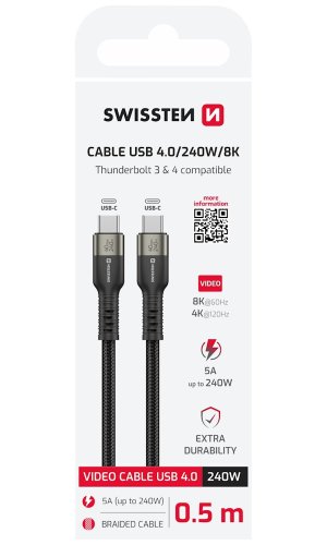 Vysoko výkonný dátový a video kábel s podporou prenosu dát až 40 Gb/sa nabíjanie výkonom až 240 W.