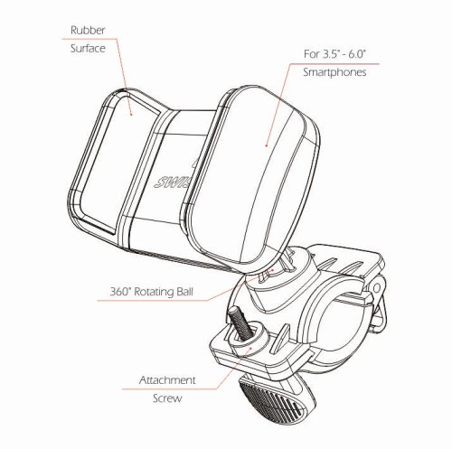 Držiak na bicykel pre smartfóny s uhlopriečkou 3,5" až 6" určený na uchytenie na riadidlá. Disponuje fixačnou gumou, ktorá zabezpečuje, aby telefón nevypadol z čeľustí.