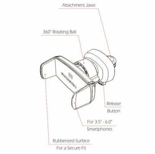 Univerzálny držiak pre zariadenie s uhlopriečkou 3,5" - 6" určený na upevnenie do ventilačnej mriežky . Vďaka špeciálnym čeľustiam držia v mriežke veľmi pevne. Držiak je možné vďaka rotačnému kĺbu voľne otáčať o 360 ° .