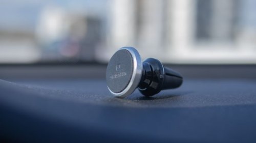 Kovový magnetický držiak pre mobilný telefón určený na upevnenie do ventilačnej mriežky . Je opatrený šiestimi magnetmi a pogumovaným povrchom pre lepšie zabezpečenie telefónu. Držiak je možné vďaka rotačnému kĺbu voľne otáčať o 360 ° .
