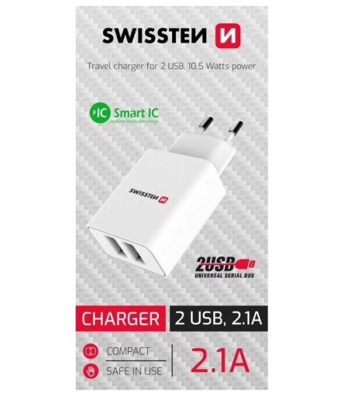 Sieťový adaptér disponuje dvoma USB portami s celkovým výstupným prúdom 2,1 A . Technológia Smart IC optimalizuje proces nabíjania. Toto balenie je vďaka vhodnej veľkosti určené na doplnenie samopredavača SWISSTEN.