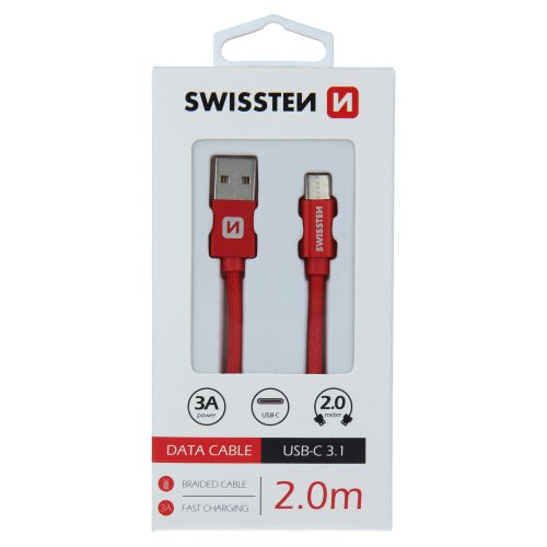 Dátový kábel Swissten USB/USB-C s kvalitným textilným opletením a kovovými krytmi konektorov. Vďaka dĺžke 2,0m je vhodný do nákladných áut, do áut pre rodiny alebo pre ľudí, ktorí často dobíjajú a majú ďaleko zásuvku av dobe dobíjania potrebujú volať. Kábel je zosilnený a prenesie tak väčší prúd (až 3A) a zvládne aj rýchly prenos dát 480 Mb/s. Životnosť kábla v ohybe je viac ako 10000 ohybov. Kovový kryt konektora je odolnejší proti mechanickému poškodeniu ako bežné plastové kryty konektorov.