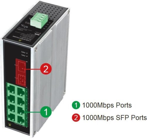 Switch namontujete na DIN lištu . Keďže nie je vybavený ventilátorom, má tichý chod. LAN porty vám navyše zaistí prenosovú rýchlosť 10/100/1 000 Mbps . Napájanie prebieha cez DC svorkovnicu.