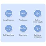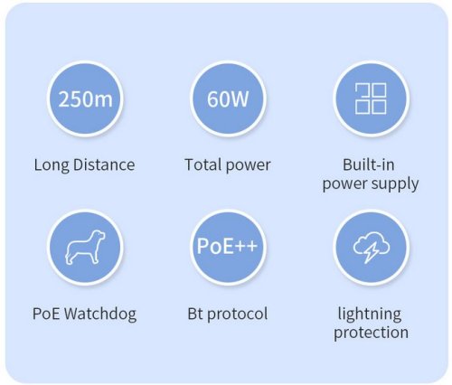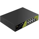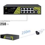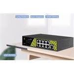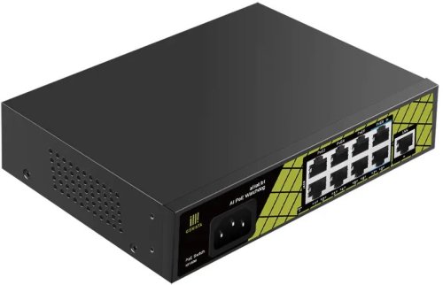 Switch nie je vybavený ventilátorom, preto má tichý chod. LAN porty vám navyše zaistí prenosovú rýchlosť 10/100 Mbps . 8 ethernetových portov podporujú funkciu PoE s celkovým budgetom 120 W (30 W na port, pri 7. a 8. porte siaha hodnota k 60 W). Napájanie prebieha cez AC konektor vďaka vstavanému zdroju.