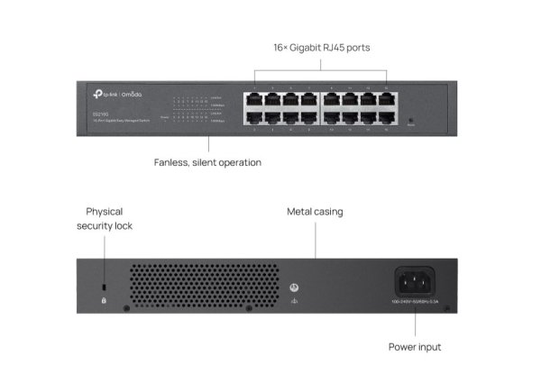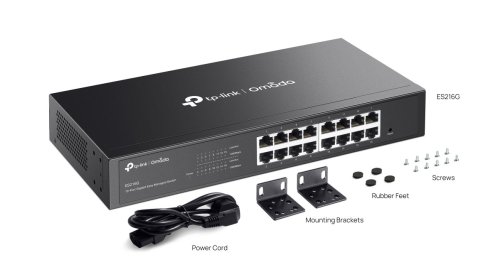 Switch ES216G je navrhnutý pre profesionálnu, ale zároveň nenáročnú prevádzku. Využijete ho ako v dohľadových systémoch , tak aj v bežnom firemnom prostredí. Vďaka plug-and-play funkcii je ihneď pripravený na použitie, zatiaľ čo centralizovaná správa cez Omada SDN umožňuje pokročilé nastavenia a monitoring. Bezventilátorová konštrukcia zaistí úplne tichý chod a vďaka robustnému kovovému telu ho ľahko namontujete do racku aj na stôl.
