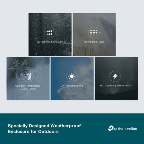 Switch TP-Link SG2005P-PD využijete vo vonkajšom prostredí . Je totiž vybavený krytím IP55 , ktoré ho chráni pred poveternostnými vplyvmi. Jeho puzdro odolá vode, prachu, UV žiareniu a dokonca je vybavené ochranou pred bleskom (4kV).