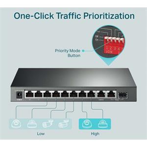 Switch TP-LINK TL-SG1210MP pracuje na druhej vrstve (L2) takzvaného OSI modelu . To znamená, že prepína sieťovú komunikáciu podľa fyzických (MAC) adries pripojených zariadení. Vďaka tomu ponúka v porovnaní s L3 switchom výrazne nižšiu cenu. Ďalej je vybavený prepínacou kapacitou 7,6 GB/sa tabuľkou MAC adries o veľkosti 2K .