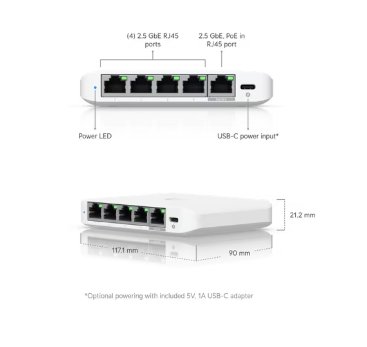 Kompaktný switch Flex Mini od značky Ubiquiti Networks je vybavený piatimi 2,5 G portami . S ich pomocou rozšírite sieť vo svojej domácnosti či kancelárii. Switch spolupracuje so zariadeniami s vysokými prenosovými rýchlosťami. Využijete ho nielen s modernými prístupovými bodmi, ale aj servermi alebo NAS úložiskami.