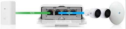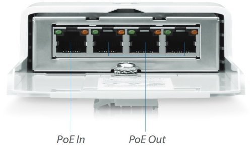 Zvyšné 3 porty slúžia na napájanie ďalších zariadení s podporou 24V pasívneho Gigabit PoE s podporou napájania po 2 pároch (štandard pre zariadenia typu NanoStation, PowerBeam, AirGrid atď.). Maximálna spotreba na port je 24W, celková spotreba všetkých 3 PoE portov je max. 24W .