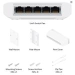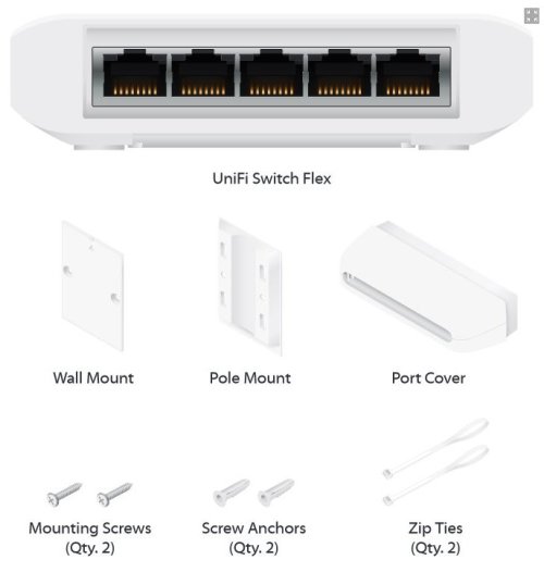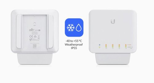 Switch USW-FLEX UniFi flex značky Ubiquiti Networks je 5-portový vonkajší Gigabitový switch umožňujúci PoE-In a PoE-Out na 4 portoch. Výstupné porty zvládajú aktívne napájanie typu 802.3af, čo dáva celkovo 15,4 W na každom porte.