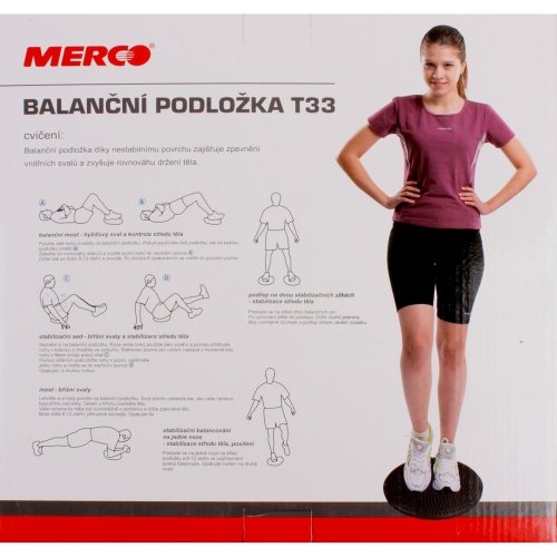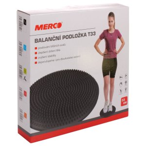 Balančná podložka Merco T33 je vhodná predovšetkým pre ľudí, ktorí majú sedavé zamestnanie a chcú predísť bolestiam chrbta. Vďaka sedeniu na balančnej podložke budete precvičovať stabilizačné svaly a vzpriamovač chrbtice po celú dobu sedenia bez toho, aby ste o tom vedeli . Ďalej táto podložka vedie k správnemu držaniu tela a je vhodná pre všetkých v každom veku. Ako si vankúšik nafúknete, alebo ktorou stranou ho otočíte je už len a len na Vás. Z jednej strany je balančný vankúš hladký, z tej druhej má masážne bodlinky. Čím viac vzduchu, tým je náročnosť udržiavať rovnováhu nižšia. Samotná podložka váži 1 kg a je určená pre maximálne zaťaženie 120 kg. Na nafúknutie podložky je potrebná pumpička s ihlou (nie sú súčasťou balenia).