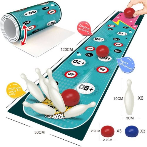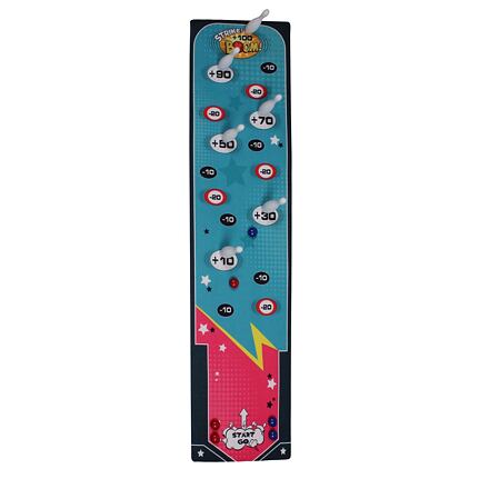 Merco Table Bowling je jednoduchá stolná spoločenská hra, pri ktorej si užijú veľa zábavy ako deti, tak dospelí. Posúvaním hracích kameňov v podobe bowlingových gulí s kovovou guľôčkou na spodnej časti sa na filcovej hracej ploche triafajú kolky a ďalšie ciele na ploche s rôznymi bodovými ohodnoteniami. Tím, ktorý zhodí viac kolkov, alebo zasiahne viac bodovaných oblastí, vyhráva. Hra je uložená v praktickom balení, takže je ľahko prenosná a vy si ju môžete na rovnom povrchu zahrať kdekoľvek a kedykoľvek. Užijete si chvíle zábavy aj napätia so spoločenskou hrou Merco Table Bowling. Obsah balenia: - 1 x hracia plocha z filcového materiálu, rozmer: 120 x 30 cm - 6 x plastový hrací kameň s kovovou guličkou. V dvoch farbách, priemer kameňa 2,5 cm - 6 x plastová kolka, priemer 3 cm, výška 10 cm - Rozmer balenia: 33 x 7 x 7 cm - Váha balenia: 265 g Pravidlá hry: 1. Rozdeľte sa na dva tímy, každý tím má 3 hracie kamene v rovnakej farbe. 2. Rozlosujte, ktorý tím bude začínať. 3. Posunutím hracieho kameňa sa snažte trafiť kolky alebo iné bodované časti hracieho poľa. 4. Po každom pokuse sa tímy striedajú. V ďalšom kole začína ten tím, ktorý v predchádzajúcom kole získal viac bodov. 5. Body sa počítajú iba ak trafíte bodovanú časť. Platný je aj pokus, keď trafíte iba okraj bodovanej časti. 6. Ak trafíte červeno označenú oblasť, body sa odčítajú. 7. Hra končí po použití všetkých kameňov a spočítaním bodov. Môžete si však zvoliť, že budete hrať na viac kôl a body spočítať až po dohraní všetkých kôl. Víťazí tím s viacerými bodmi. Variant - obranná hra: Obranca rozmiestni svoje tri gule v zadnej polovici ihriska, jednu guľu umiestni do oblasti 100 bodov a zvyšné dve gule ako obranca. Útočiaca strana musí použiť svoje tri gule na to, aby odpálila gule brániacej strany mimo bodovaciu oblasť. Po útoku a obrane si obrancovia a útočníci vymenia pole a pokračujú v hre. Za úspešnú obranu alebo útok sa zapisuje 1 bod a vyhráva tím, ktorý ako prvý získa 10 bodov. Hra je určená pre 2-6 hráčov a je vhodná pre deti od 6 rokov.
