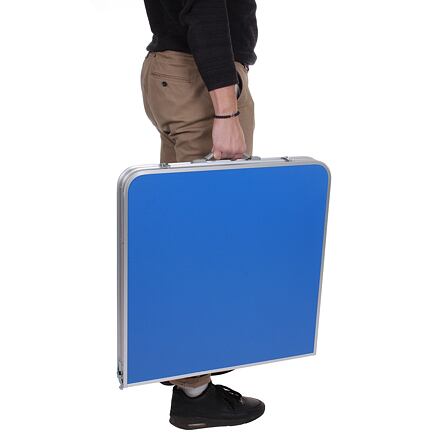 Skladací Table pong 120 je perfektnou voľbou pre všetkých, ktorí hľadajú kompaktné riešenie pre stolný tenis na zábavu v malých priestoroch – či už doma, na záhrade alebo pri rodinnej alebo firemnej akcii. Stôl má rozmery 120 x 60 cm a ponúka nastaviteľnú výšku na 54, 61 alebo 70 cm, čo zaručuje pohodlné prispôsobenie pre všetky vekové kategórie. Vďaka ľahkej, ale pevnej konštrukcii z hliníkovej zliatiny a odolnej plastovej doske je veľmi ľahko prenosný a skladný. Súčasťou balenia sú tiež nevyhnutné doplnky: sieťka v plastových držiakoch, dve jednoduché pálky so základným poťahom a tri loptičky uložené v sťahovacom sieťovanom obale. Jednoduchá príprava na hru Príprava stola trvá len pár minút. Stačí roztvoriť poistné spojky na boku zloženého stola, rozložiť podstavec a stôl zaistiť poistnými spojkami na strede. Výšku nastavíte vysunutím podstavca a upevnením kovových kolíkov. Sieťku jednoducho upevníte jedným držiakom na stredu stola, vyrolujete ju cez celú šírku stola a pripevníte druhý držiak. Upozornenie: - mini stôl Table pong 120 nie je vhodný pre deti do 3 rokov - na stôl sa nesmú pokladať žiadne predmety Parametre: Rozmery rozloženého stola: - rozmer dosky stola: dĺžka x šírka x hrúbka: 120 x 60 x 3 cm - výška stola - nastaviteľná do 3 polôh: 54/61/70 cm Rozmery zloženého stola: - dĺžka x šírka x hĺbka: 62 x 60 x 6,5 cm Rozmery držiakov a sieťky: - držiaky: výška x šírka x hĺbka: 17 x 7 x 5 cm - určené pre maximálnu hrúbku dosky stola 4,5 cm - sieťka rolovacia: výška 15 cm, možnosť roztiahnutia až na max. dĺžku 140 cm Váha stola bez sieťky s držiakmi: 4 kg Materiál: - doska stola: plast ABS - konštrukcia stola: hliníková zliatina - držiaky, sieťka: plast PP,PE - pálky: topoľové drevo, gumový poťah - loptičky: plast Obsah balenia: - rozkladací stôl - 2 x držiak s narolovanou sieťkou - 2 x pingpongová pálka - 3 x pingpongová loptička
