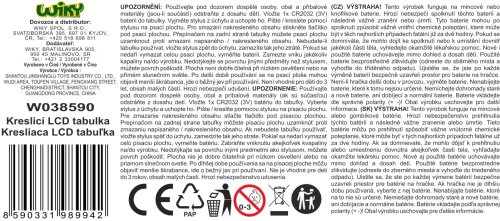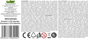 Kresliaca LCD tabuľka. Veľkosť 30 cm. Obsahuje tablet, pero na kreslenie, tlačidlo na zmazanie obrazovky a zámok obrazovky. 1xCR2032 batérie súčasťou.