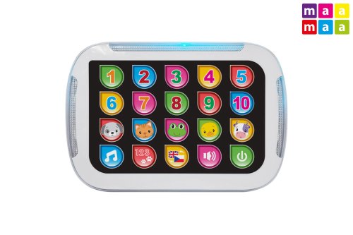Tablet detský - hovorí po česky. Rozmery 19x13 cm. Svetelné a zvukové efekty. 3xAAA batérie súčasťou. Aktivácia tlačidlom v pravom dolnom rohu. Výučba čísel, zvierat, melódie, zmena jazyka, nastavenie hlasitosti.