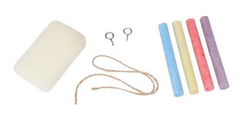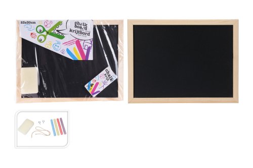 Čierna tabuľa je lemovaná rámčekom z borovicového dreva (FSC 100% drevo). Súčasťou sady je príslušenstvo - farebné kriedy a hubka na čistenie.