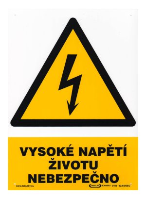 Tabuľka - VYSOKÉ NAPÄTIE - ŽIVOTU NEBEZPEČNO 210 x 297 mm, (A 4), PH. rozmery: 210 x 297 mm materiál: plast Bezpečnostná tabuľka, ktorej účelom je opatrenie a zníženie rizík.