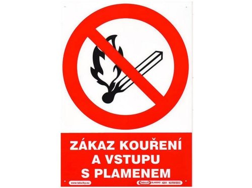 Tabuľka - ZÁKAZ FAJČENIA A VSTUPU S PLAMEŇOM 210 x 297 mm, (A 4), PH.