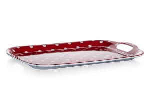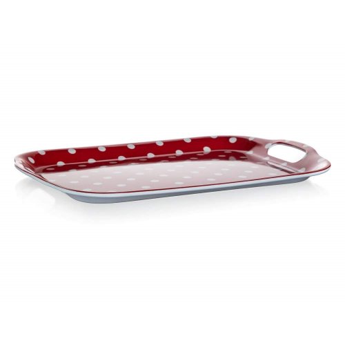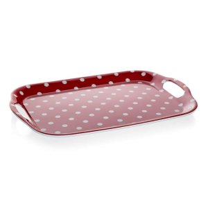 Tácka 36 x 25,5 cm, DOTS ČRV, s uchami, melamín. rozmery: 36 x 25,5 cm materiál: melamín farba: červená Melamínová tácka DOTS v červenej farbe je výborným pomocníkom na prenášanie viacerých potravín a nápojov.