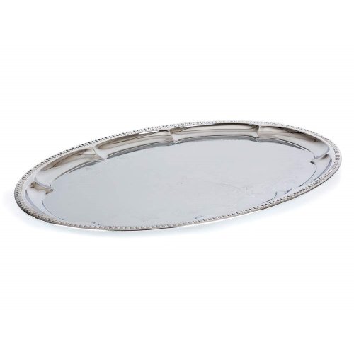 Oválna tácka AKCENT - pochrómovaná kovová tácka s ozdobným gravírovaním.