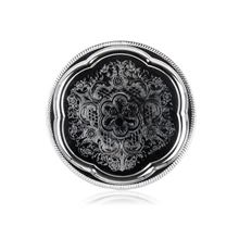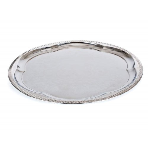 • Okrúhla kovová tácka AKCENT s pochrómovaným povrchom a ozdobným gravírovaním