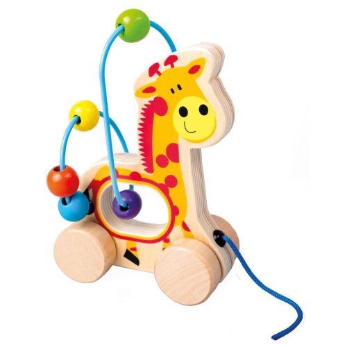 Ťahacia hračka s motívom žirafy, ktorá pomáha deťom s ich prvými krôčikmi a cvičením rovnováhy.