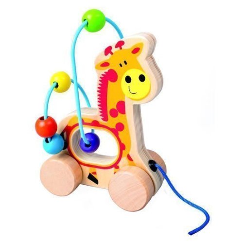 Ťahacia hračka s motívom žirafy, ktorá pomáha deťom s ich prvými krôčikmi a cvičením rovnováhy.