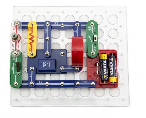 Naučte sa zapájať elektrické obvody, prepínače, svetelné a zvukové zdroje alebo dokonca aj motor pomocou elektronickej stavebnice. Vďaka jednoduchému ovládaniu si deti rýchlo osvoja základy elektroniky a elektrotechniky. Podľa podrobného návodu, ktorý je v slovenskom jazyku, si môžu zostaviť až 500 elektrických zariadení. V krabici 42x28,5x4 cm. Vhodné od 6 rokov.