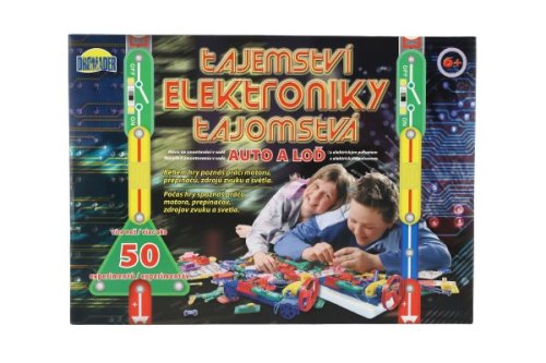 Elektronická stavebnica, z ktorej je možné zostaviť podľa návodu až 50 projektov. Deti si môžu zostaviť auto a loď s elektrickým pohonom. Počas hry deti spoznajú prácu motora, prepínačov alebo zdrojov zvuku a svetla. V krabici 46,5x33,5x4 cm. Vhodné od 6 rokov.