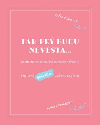 Byť nevestou bude s týmto diárom skutočne IN. Než začnete diár vyplňovať, musíte sa prestať smiať! Originálne, vtipne poňatý diár pre nevestu, obsahujúci kolónky, riadky, rámčeky ... pre zápis všetkého, čo je pre praktické plánovanie svadby potrebné, plný úsmevných, "pravdivých" rád, odporúčaní, tipov a "relax" prvkov, ktoré urobia zdu.Jedinečn ý originálny denník pre nevestu, ktorý sa zaručene stane jej najlepšou kamarátkou pri svadobných prípravách . Na diári pracoval tím ľudí, ktorý má svet svadieb rád, má naň priame väzby a vie, že to hlavné, čo nevesta potrebuje, je šťastný úsmev na tvári.