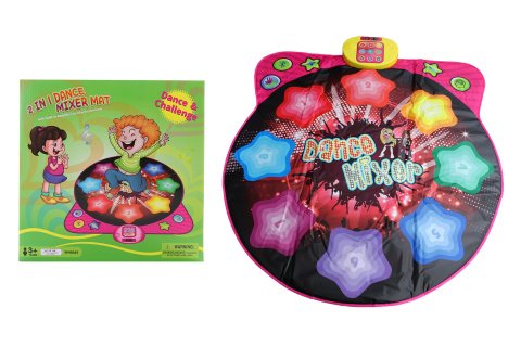 Tanečný koberec s funkciami na 3 AA batérie, ktoré nie sú súčasťou balenia. Ikony - tanečné, Bluetooth, hlasitosť a 8 tanečných klávesov. Balenie v krabici, obsahuje návod. Rozmery koberca 88x102 cm. Materiál plast. Vek 3+