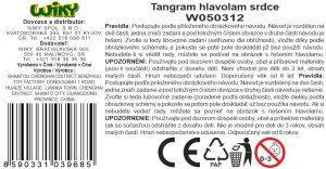 Tangram hlavolam srdca. Veľkosť 12cm. Obsahuje dve hracie polia v tvare srdca a obdĺžnika. Obsahuje zadanie 120 úrovní so zvyšujúcou sa náročnosťou a ich riešenie. Hráč sa pozrie na prvé zadanie, ktoré je vždy na obrázku jednofarebne. naskladá podľa predlohy príslušné dieliky na hracie pole a chýbajúce dieliky musia v čo najkratšom čase doplniť aby bol obrázok kompletný. Čím vyššia úroveň, tým viac dielikov chýba a je potrebné ich doplniť. Obrázkové riešenie obsahuje už presné tvary a farby dielikov.