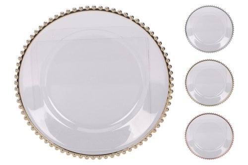 priemer: 33 cm materiál: plast farba: transparentné farebné lemovanie mix: strieborná, zlatá, ružová