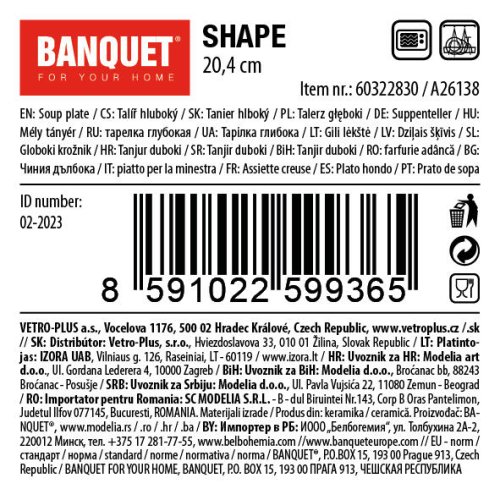 Tanier hlboký 20,4 cm, SHAPE, keramický.
