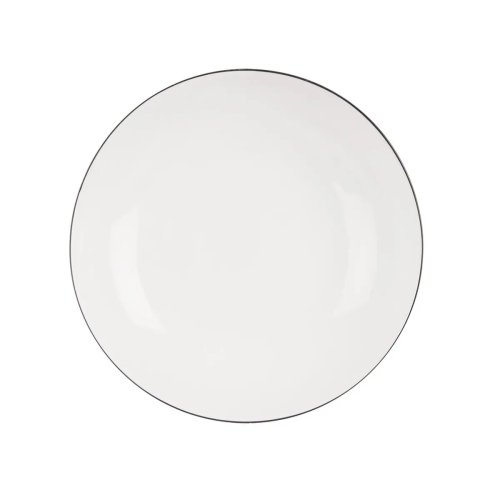 Elegantný porcelánový hlboký tanier má hladký biely povrch a je zdobený jemnou čiernou linkou po okraji, ktorá podčiarkuje jeho vycibrený vzhľad. Ideálny štýlový doplnok pre každú domácnosť. Materiál New Bone China – veľmi kvalitný, pevný a odolnejší ako bežný porcelán. Rozmery priemer 20.2 cm. Možno umývať v umývačke a použiť v MVT. EAN 8592381256203