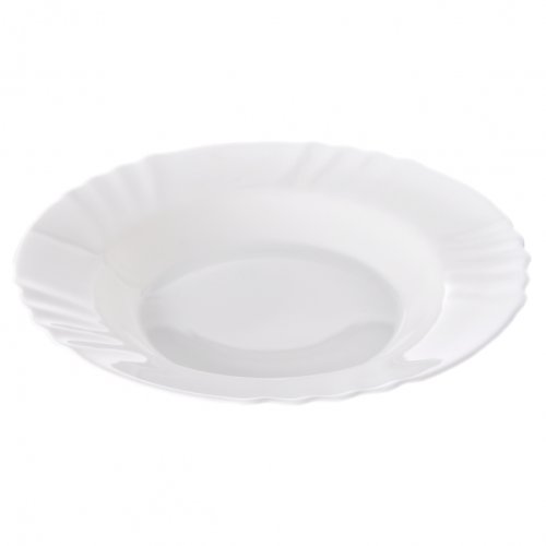 Hlboký tanier EBRO z tvrdeného skla bielej farby. Tanier je možné používať do mikrovlnnej rúry aj do umývačky riadu. Vyrobené v EÚ. Riad je vysoko odolný proti poškriabaniu, oteru, tepelnému šoku, je neporézny a teda zabraňuje usadzovaniu baktérií, udržuje teplotu pokrmov, je 100% recyklovateľný.