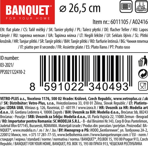 Tanier plytký 26,5 cm, porcelánový BÍ.