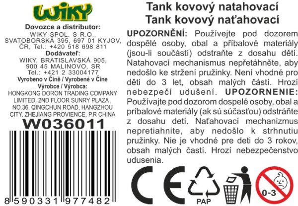 Naťahovací kovový tank, ktorý zabaví každého malého milovníka vojakov a armády. Veľkosť tanku: 6 cm Rozmer balenia: 7 x 3 x 5 cm Vhodné pre deti od 3 rokov