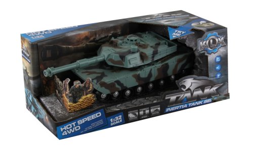 Tank na zotrvačník so zvukovými a svetelnými efektmi. Batérie 3xAG13 sú súčasťou balenia. So svetlom a zvukom. Na drsnom povrchu môže stúpať v 45 ° uhle, otáča sa o 360 °, hlaveň tanku sa hýbe hore a dole.