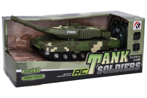 Tank RC na diaľkové ovládanie s efektmi. Rozmery 28x11x8 cm. Ovládač - pohyb dopredu, dozadu, doľava, doprava, efekty, prostredné tlačidlo bez funkcie. 1x3, 7V 500mAh battery pack, súčasťou balenia. Ovládač - 2xAA (1,5V), nie sú súčasťou. USB nabíjací kábel súčasťou balenia. Frekvencia 27 MHz.