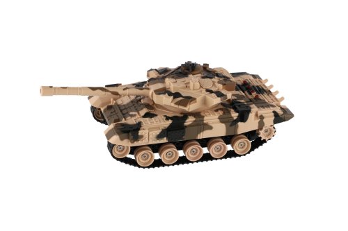 Tank vhodný pre tankovú bitku. Tank vydáva zvuky, strieľa, otočná veža sa otáča o 360 stupňov, svieti. Kto stratí všetky "životy", prehral. Hlaveň vydáva zvuky. Tento tank pracuje na frekvencii 40 MHz. Vyrobené z kvalitného a odolného plastu. Mierka 1:32. Batérie 1x 4.8V AA (tank), 1x 9V (diaľkové ovládanie) sú súčasťou balenia. Vrhni sa do vojnovej bitky! Ovládaj tank a hľadaj svojho nepriateľa! Vzdialenosť diaľkového ovládača do 15 metrov. Vzdialenosť medzi tankami pre tankovú bitku do 4 metrov. Prvá doba nabíjania batérie je 8 hodín. Každé ďalšie nabíjanie bude 3-4 hodiny do plného nabitia batérie. Jeden plne nabitý dobíjací pack vydrží 10-15 minút hry. Pri nákupe druhého tanku, napr. pre tankovú bitku, musí byť druhý tank na inej frekvencii. Tzn. ak máte tank na frekvencii 40 MHz, druhý tank musí byť na frekvencii 27 MHz. Rozmery balenia 37 x 17 x 19 cm. Vhodné pre deti od 8 rokov.