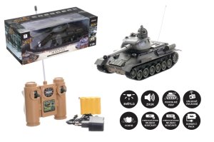 Tank T-34/85 o rozmere 33 cm poteší každého chlapca. Na batérie, s dobíjacím packom, so zvukom a svetlom, 27MHz, v krabici. Rozmer krabice 40 x 15 x 19 cm Vhodné od 6 rokov Pri nákupe druhého tanku, napr. pre tankovú bitku, musí byť druhý tank na inej frekvencii. Tzn. ak máte tank na frekvencii 40 MHz, druhý tank musí byť na frekvencii 27 MHz.