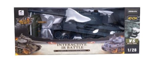 Tank TIGER Aj o rozmere 33 cm poteší každého chlapca. Tank sa pohybuje rýchlo a pružne všetkými smermi a vie sa aj otáčať na mieste. Má zvukové a svetelné efekty. Veľmi detailne spracovaný funkčný RC model. Skvelé jazdné vlastnosti, realistické zvuky. Na batérie, s dobíjacím packom, so zvukom a svetlom, 40MHz, v krabici. Dosah diaľkového ovládania do 25 metrov. Doba prevádzky cca 15 min na jedno nabitie. Rozmer krabice 40 x 15 x 19 cm. Vhodné pre deti od 6 rokov. Pri nákupe druhého tanku, napr. pre tankovú bitku, musí byť druhý tank na inej frekvencii. Tzn. ak máte tank na frekvencii 40 MHz, druhý tank musí byť na frekvencii 27 MHz.